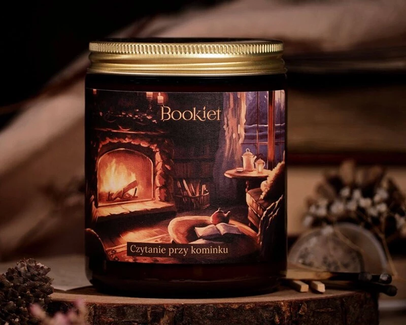 Świeca sojowa o zapachu zimowej herbatki przy kominku.